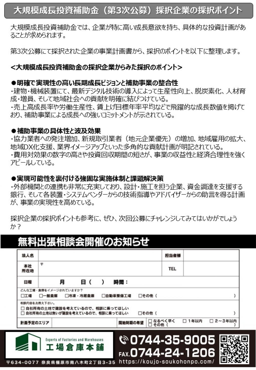月刊工場・倉庫通信 2025年8月号 【大規模成長投資補助金の採択ポイントを解説】工場・倉庫本舗2025年8月4日https://koujo-soukohonpo.com/detail.html?id=219 月刊工場・倉庫通信 2025年8月号 【大規模成長投資補助金の採択ポイントを解説】|工場・倉庫本舗