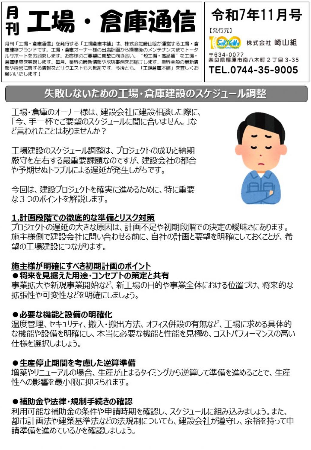 月刊工場・倉庫通信 2025年11月号 【失敗しないための工場・倉庫建設のスケジュール調整】工場・倉庫本舗2025年11月1日https://koujo-soukohonpo.com/detail.html?id=231 月刊工場・倉庫通信 2025年11月号 【失敗しないための工場・倉庫建設のスケジュール調整】|工場・倉庫本舗
